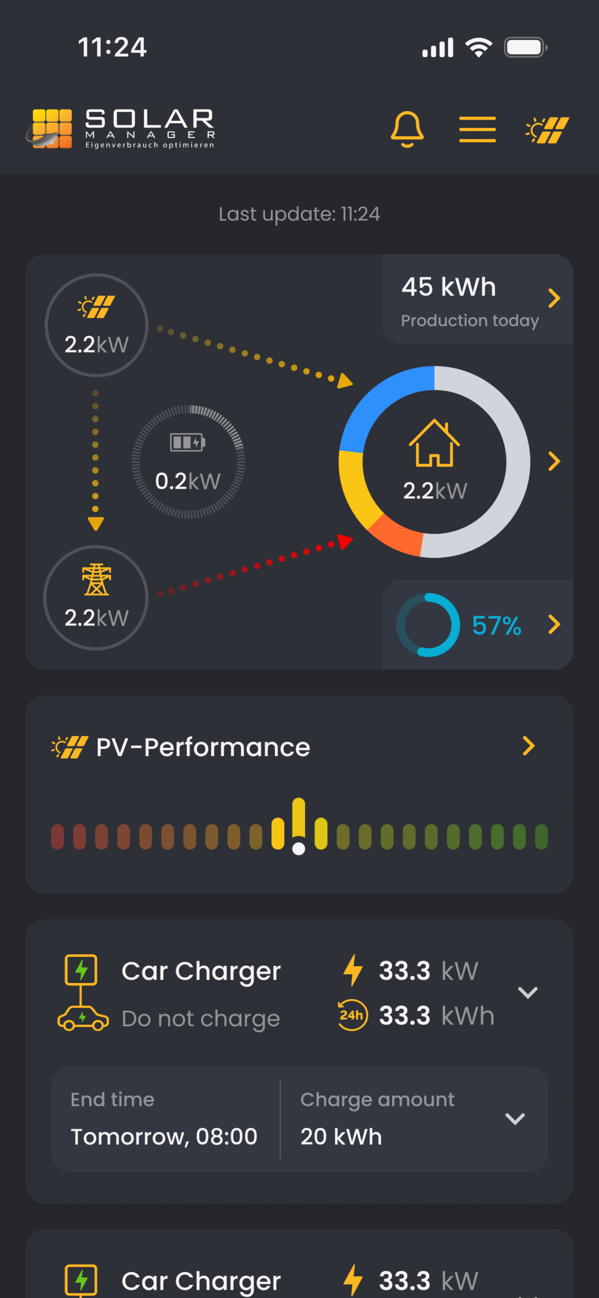 Votre valeur ajoutée grâce à la fonctionnalité PV Performance L’analyse des performances photovoltaïques de Solar Manager vous montre en un coup d’œil, en tant qu’installateur, l’efficacité de vos installations photovoltaïques et les points à améliorer. Alors que vos clients voient dans l’application un aperçu clair et simplifié avec un indicateur de performance et une analyse […]