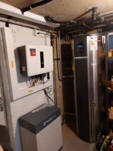 L’installation dispose d’une puissance photovoltaïque installée de 15,84 kWc, d’un onduleur Solinteg MHT 15K-40 de 15 kVA et d’un accumulateur Pylontech Force H3 d’une capacité de 15 kWh. La combinaison de l’installation photovoltaïque et du système de stockage permet d’atteindre un taux d’autoconsommation élevé et une utilisation flexible de l’énergie produite. Le Solar Manager assure à la fois la visualisation et la fonction de système de gestion de l’énergie. Il coordonne la production, le stockage et la consommation en temps réel. La station de recharge go-e existante a été intégrée de manière transparente et peut être alimentée de manière ciblée par l’électricité solaire excédentaire. De plus, la chaudière à pompe à chaleur existante a été connectée via le contact sans potentiel (D-Out 1) du Solar Manager. Ainsi, la production d’eau chaude est automatiquement adaptée à la production photovoltaïque actuelle.